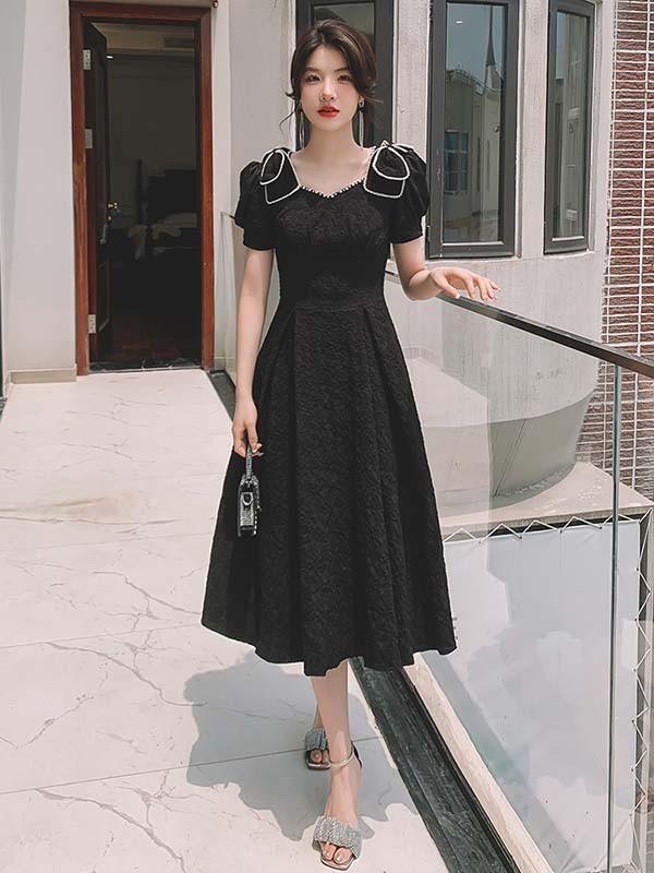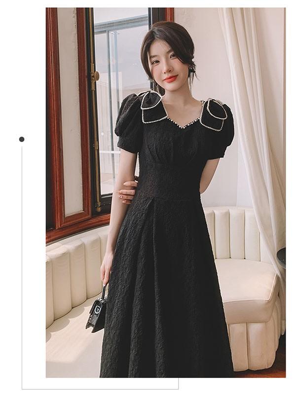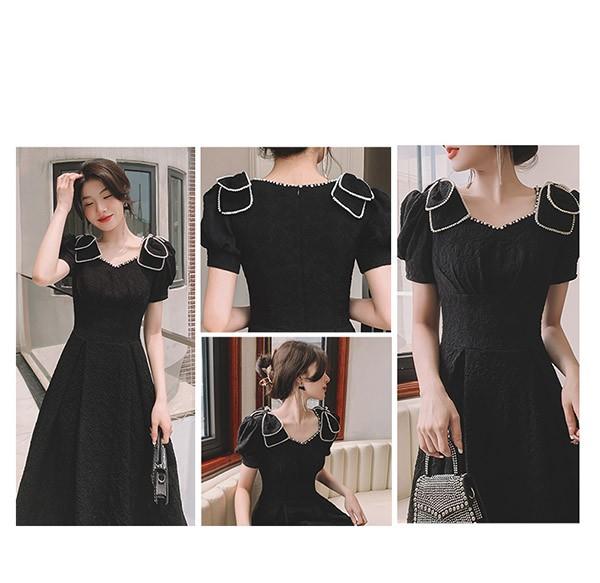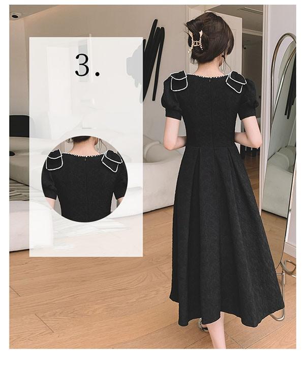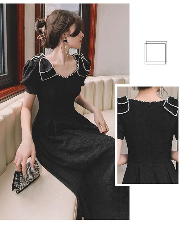ミモレ丈 ドレス ひざ下丈ドレス レディース 黒 ブラック 演奏会 ピアノ 発表会 5分袖付き 袖あり ポワント袖 ハートネック ファスナー 大きいサイズ 大人 母親 結婚式 体型カバー 謝恩会 卒業式 誕生日会 ステージ 20代 30代 40代 秋冬 XS 2XL da224x1x1l9