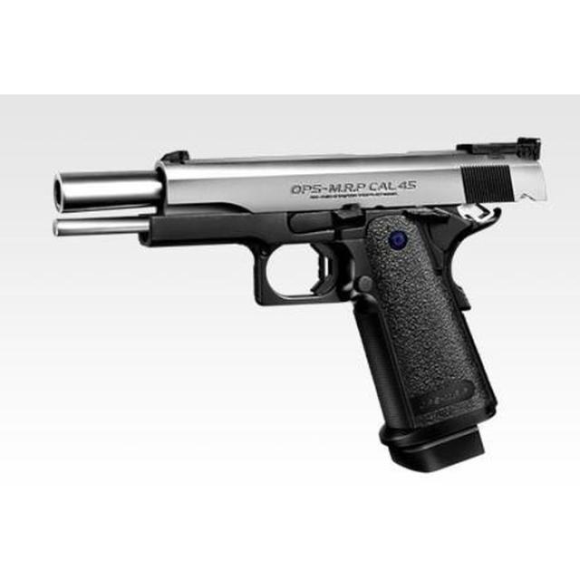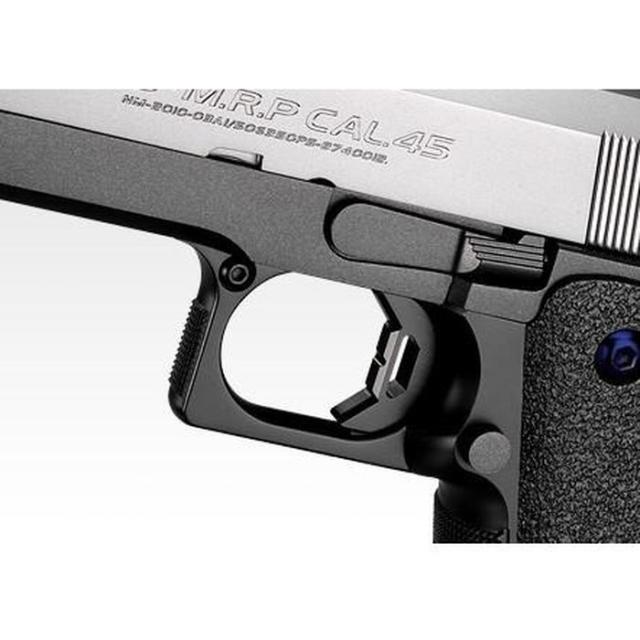 コンバットとスポーツを両立したハイキャパシティ・ガバメント。コンバット/スポーツ・シューティングの最新コンセプトにもとづいてデザインされたハイキャパ5.1が、17才以下も購入可能なガスブローバックRシリーズとなってモデルアップ!18才以上用レベルの強力な反動はそのままに、高い命中精度と“青少年育成条例”をクリアした「0.135J以下の発射パワー」を実現しています。さらにシューティングの早さと正確さをより追求するパーツを採用し、東京マルイが誇る実射性能とあいまって、様々なシーンでマルチに活躍できる能力を秘めたモデルに仕上がっています。《主な特徴》マットブラックのスライドとボディを持つ実戦的「ブラックモデル」と、スライドのシルバーとブラックボディのコントラストがきいた「シルバースライド」の2機種がラインナップ。フルアジャスタブル・リアサイト:上下左右に調整が可能なリアサイトを採用。ターゲットとの距離に合わせたより精密なシューティングを行うことができます。アンビデクストラウス・サムセフティ:左右両側にサムセフティを設置した、持ち手を選ばない実戦向けスタイルです。角型ヘヴィタイプ・スライド:スライド上面に何本ものミゾを刻んだ「反射防止グルーヴ」は、サイティング時に反射した光が目に入るのを防止します。ショートタイプ・トリガー:発射までのスピードでアドバンテージを得るためにデザインされた、指をベストな位置へガイドするトリガーを採用。迫力のブローバック:発射と同時にスライドが勢いよく後退し、見た目の迫力と発射時の強烈な反動をリアルに再現したモデルです。ハイキャパシティ・マガジン:装弾数31発、ガス大容量の大型マガジンが付属します。