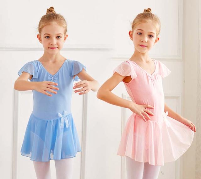 バレエレオタード キッズ・子供用レオタード 子供服 女の子 肩フリル 綿生地 可愛い バレエ ダンス 新体操 教室 練習着