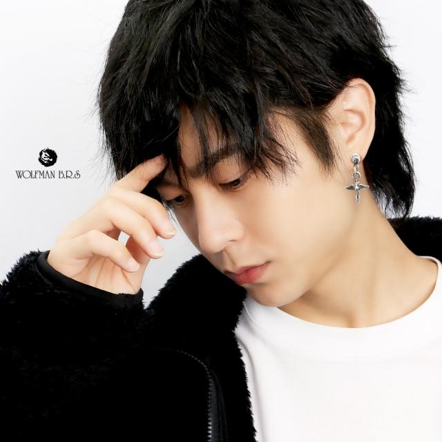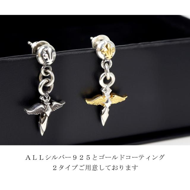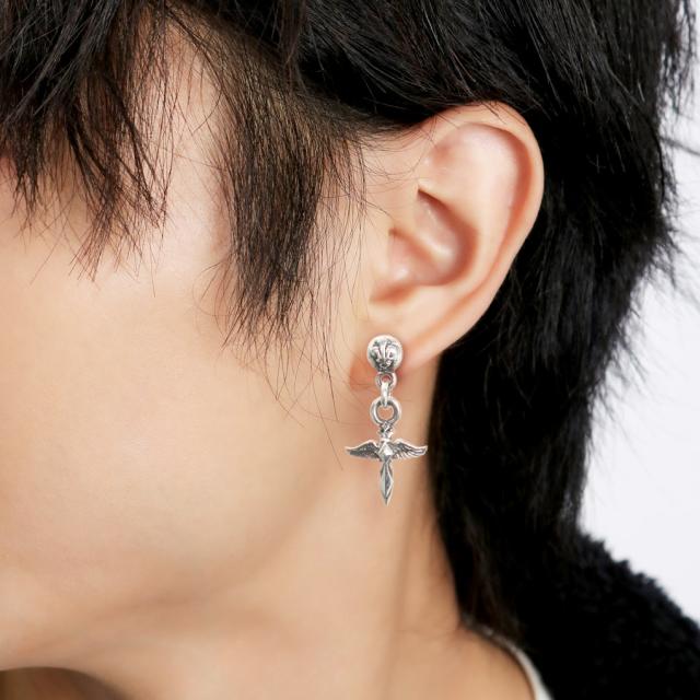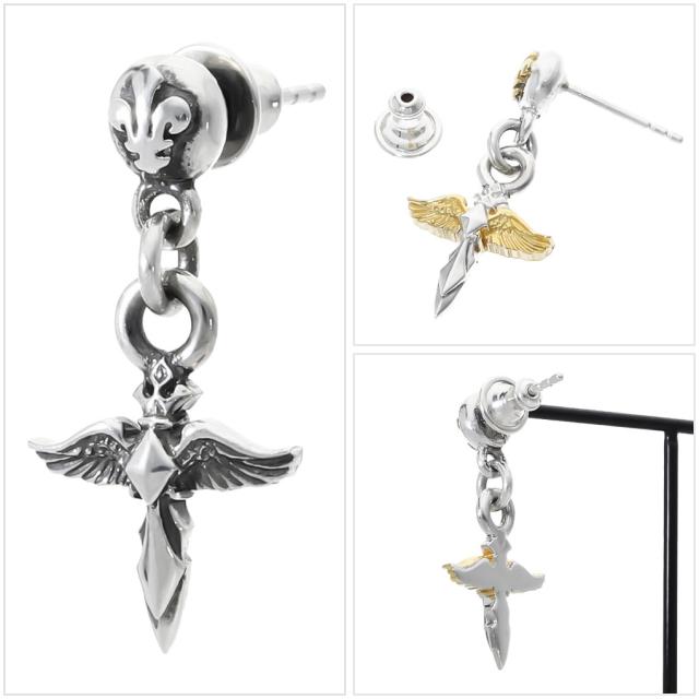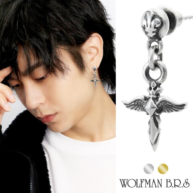 ウルフマン BRS エンジェル ティアドロップ シルバー ピアス 1P 片耳 ブランド ウルフマンBRS WOLFMAN シルバー925 翼 羽 クロス 十字架 揺れる
