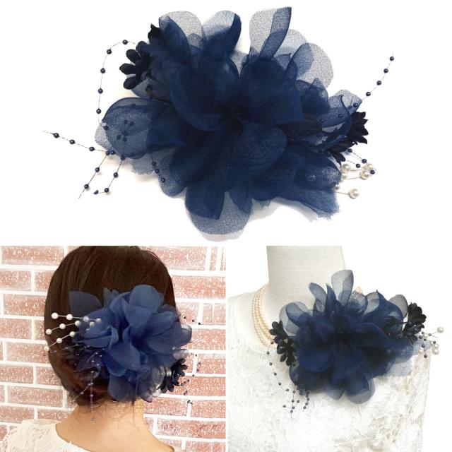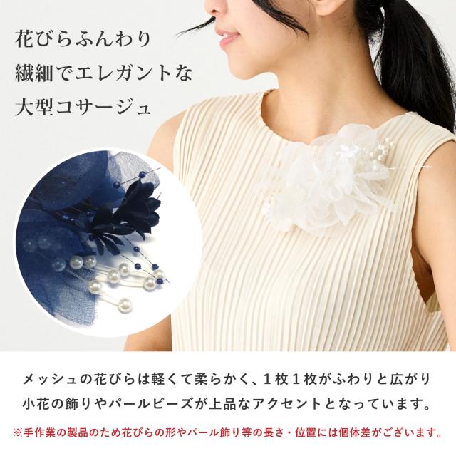 【メール便送料無料】コサージュ 入学式 卒業式 大きめ 約15cm エレガントブルーム 柔らかなメッシュ花びら 立体感 豪華 パール飾り オーガンジー フォーマル 約15cm 華やか 10a 入園式 レディース スーツ 結婚式 お洒落 合唱 コーラス 衣装 髪飾り 浴衣 プレゼント 即納
