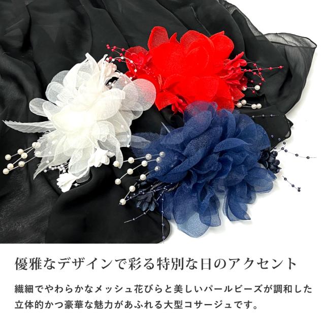 立体的かつ豪華な魅力があふれる大型コサージュです。