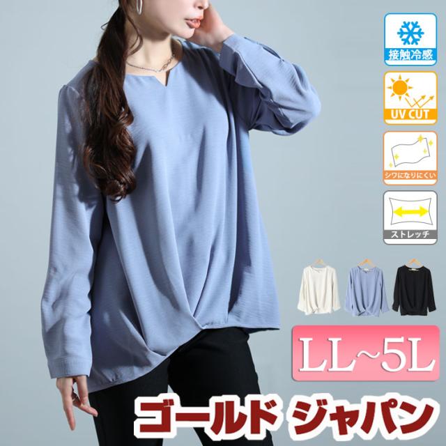 秋新作 大きいサイズ レディース トップス ブラウス シャツ キーネックタケノコタックブラウス 長袖ブラウス 長袖 キーネック タック タケノコタック バルーン ストレッチ 軽量 通勤 オフィス 春服 夏 秋服 LL 2L 3L 4L 5L ブラック 黒 ブルー アイボリー ゴールドジャパン