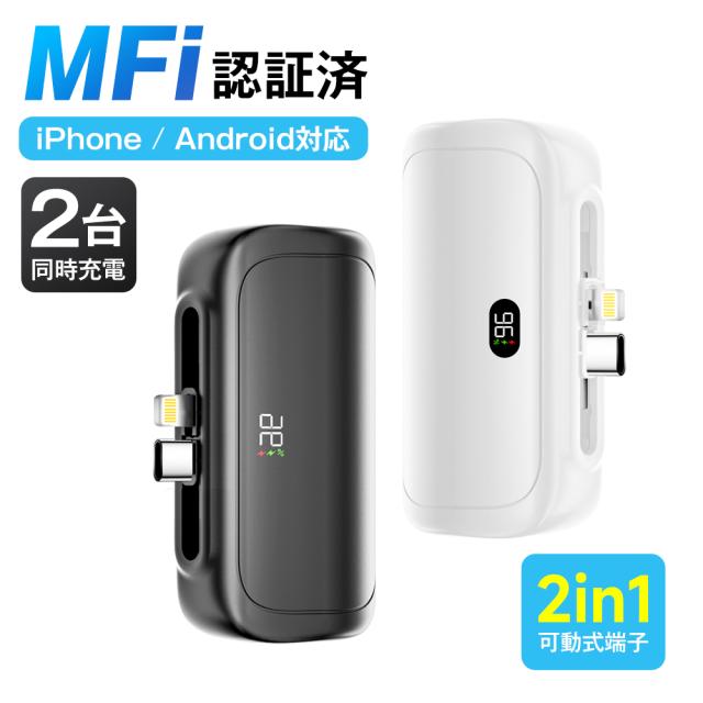 モバイルバッテリー A88 軽量 大容量 小型 Lightning type-c 一体型 2.4A急速充電 6800mAh 2台同時充電 スマホ充電器 iPhone/Android