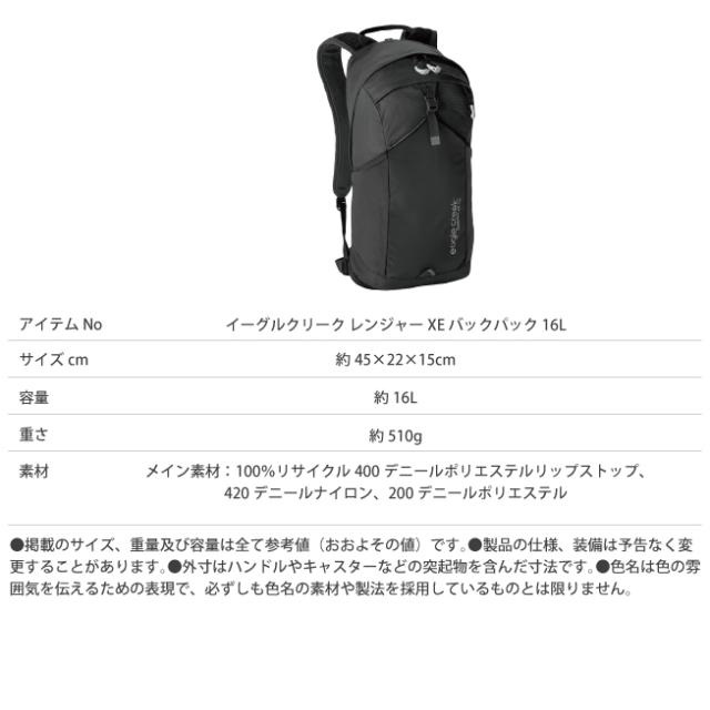 イーグルクリーク レンジャーXE バックパック 16L コンパクト 軽量 デイパック 通気性抜群 アウトドア トラベル ハイドレーション対応 EagleCreek RANGER XE
