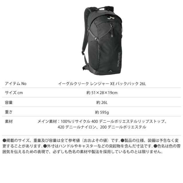 イーグルクリーク レンジャーXE バックパック 26L リュック 通気性 テクニカルパック ラゲージスリップ ハイドレーション対応 アウトドア 旅行 EagleCreek RANGER XE