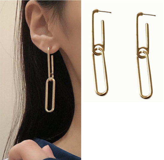 ★ 両耳用 チェーン リング ピアス ★ レディース ジュエリー フープピアス 耳飾り イヤリング スタッド オシャレ アクセサリー 2色 N84-5