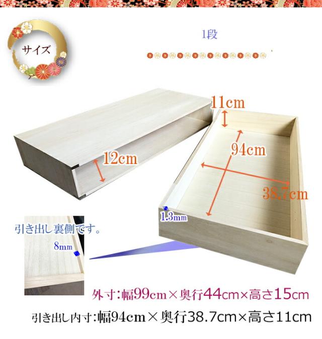 幅99cm 奥行44cm 高さ15cm 日本製 桐箱 1段 かぐら【総桐 桐 衣装ケース チェスト おしゃれ 国産 桐タンス 桐箪笥 着物 着物収納 衣類収納 和たんす 和箪笥 箪笥 タンス 桐ダンス 押入れ収納 引き出し 収納ケース ベッド下収納