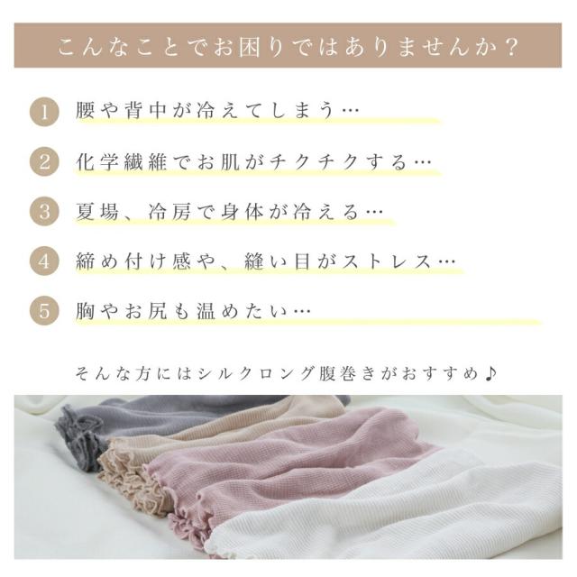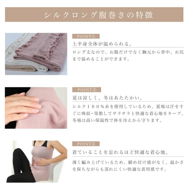 シルク素材は薄手で暖かく、蒸れずに快適!オールシーズン(一年中)着用いただける、大人気のロングサイズのシルク腹巻き 【送料無料】