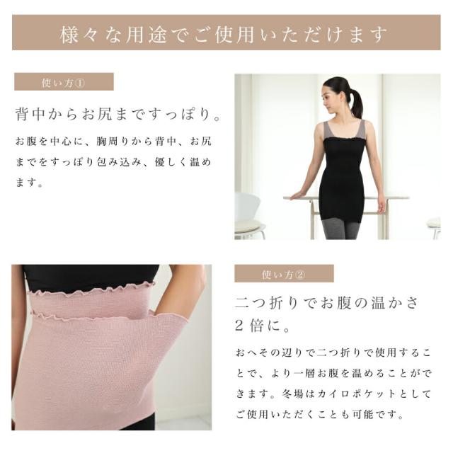 *お腹を温めて健康な身体づくりで病気予防* 「繊維の女王」と呼ばれるシルクは万能の天然繊維で、肌の成分と同じアミノ酸で構成されています。保温性に優れ、吸湿性・放湿性が高く、蒸れにくいので清潔で快適。一年を通して着用していただけます。 妊婦さんにもご使用可能です♪ |
