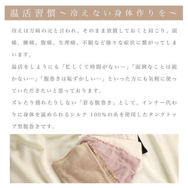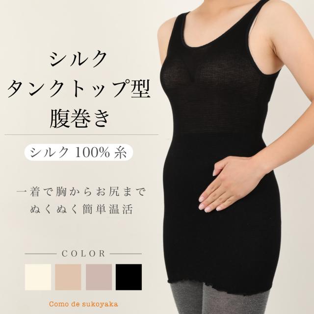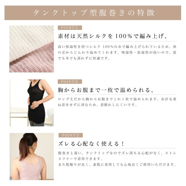 【日本製】シルク タンクトップ型 腹巻き シルク100%糸 絹 シルク 100% 腹巻 腹巻き はらまき ハラマキ レディース 女性 マタニティー 温活 妊活 妊婦 冷え予防 冷えとり 冷房対策 汗取り 温かい 薄い 薄手 ずれない インナー オールシーズン 秋冬 あたたかい 背中