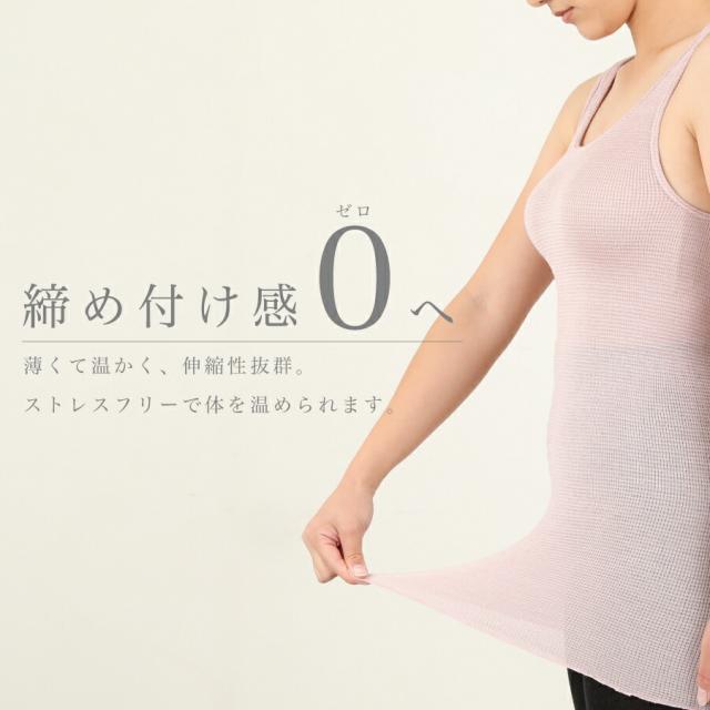 シルク100%糸使用のタンクトップ型の『着る腹巻き』が登場!ズレる心配もなく、胸から下腹部まですっぽり包み込み、一年中快適にご使用いただけます♪あったかインナー!