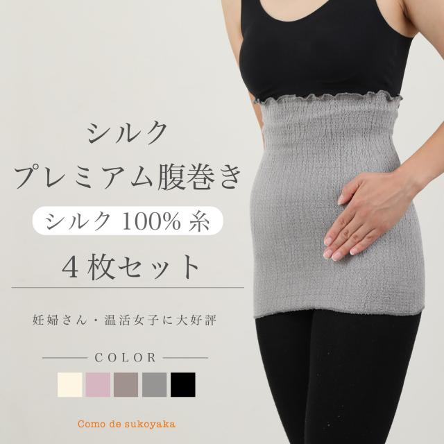【日本製】4枚セット シルク プレミアム腹巻き シルク100%糸 シルク 100% 絹 腹巻き 腹巻 はらまき ハラマキ レディース 女性 マタニティー 温活 妊活 腹帯 冷え予防 温かい 二重構造 インナー 妊婦 オールシーズン 春 夏 秋 冬 冷えとり 冷え対策グッズ 冷房対策 あたたかい