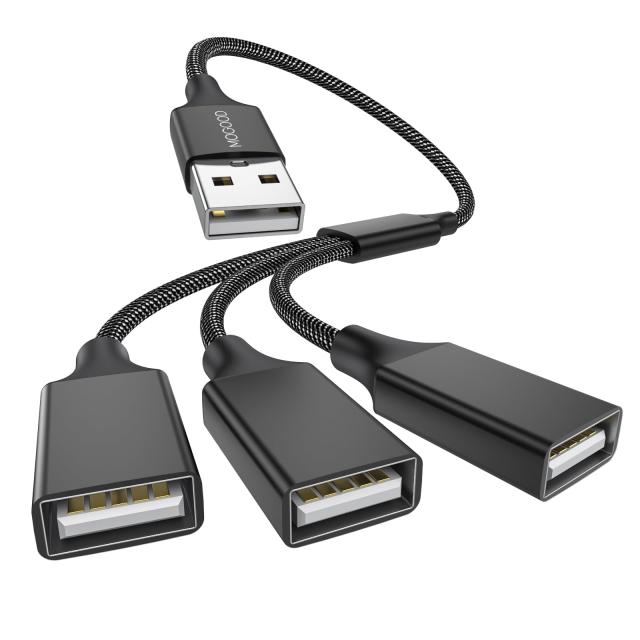 MOGOOD 3-in-1 USB分岐器ケーブル、USB電源分岐器1オス3メスUSB 2.0アダプタ1-3 USB分岐器USB拡張ケーブルUSBマルチポート充電/データ転