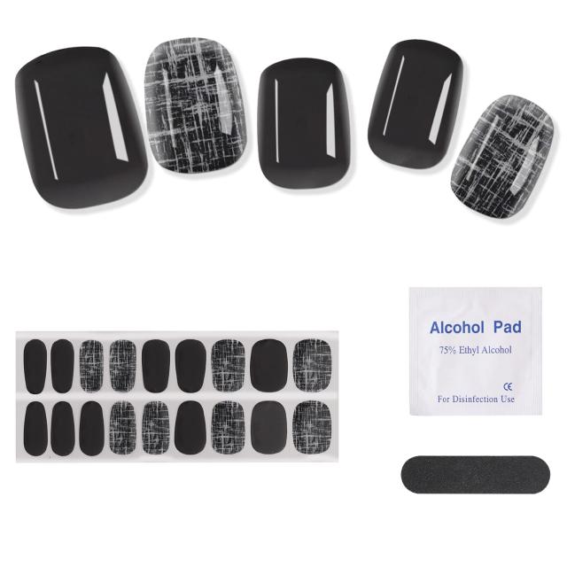 NIUANIUA ジェルネイルシール 硬化タイプ ネイルシール ジェルネイル 貼るだけ セット24枚ジェルネイルシール ネイルシール貼る 黒セミ硬