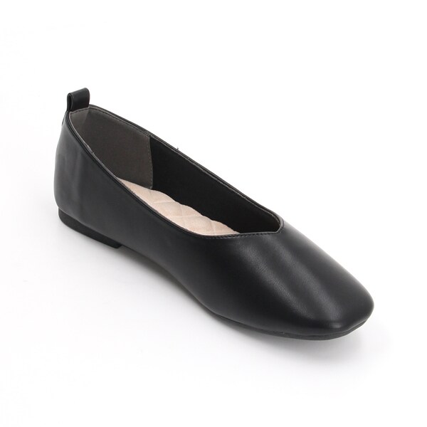 ◆ソフトスクエアートゥとVカットデザインが足元をすっきりと見せ、おしゃれな印象を演出