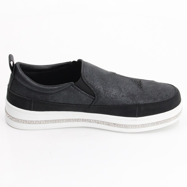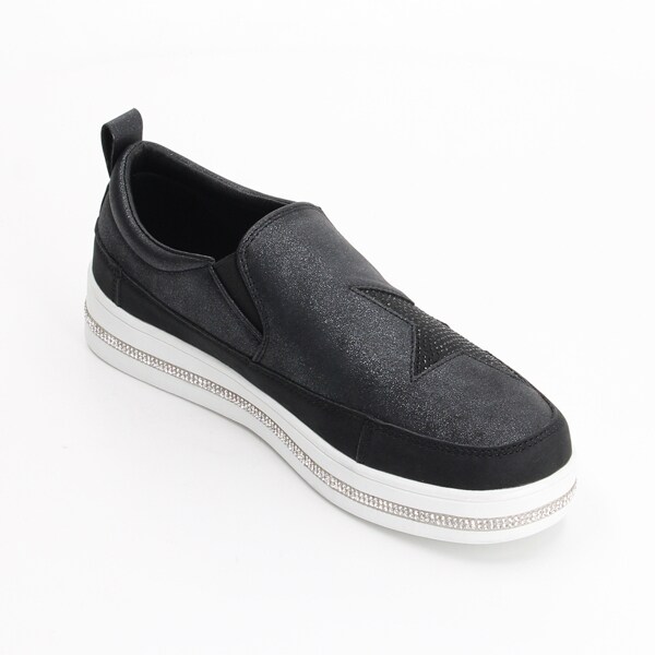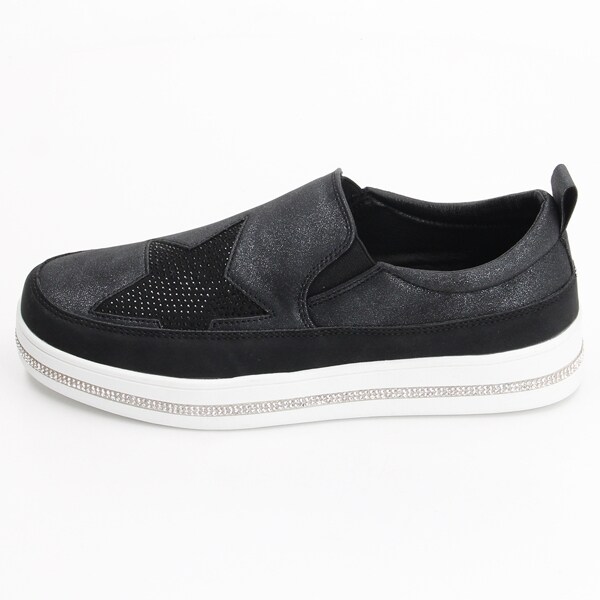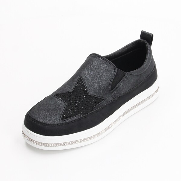 ラインストーンと星のホットフィックスが目を惹くスリッポンスニーカー