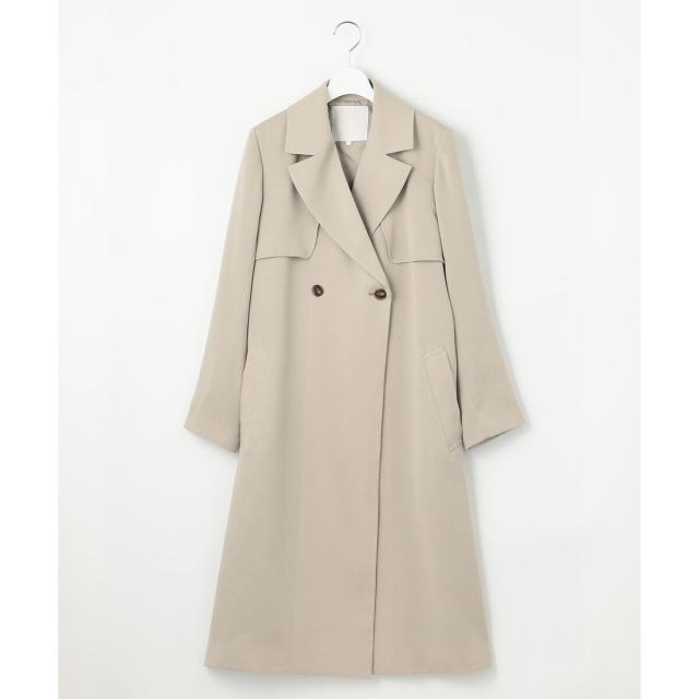 とろみのある柔らかな素材と軽い着心地が人気のロング丈トレンチコート■デザインしなやかなドレープ感と程よい抜け感を感じられるロング丈のトレンチコートです。ダブル前のたっぷりとしたデザインにすることで、羽織った時のドレープ感が華やかな印象です。共のベルトでウエストマークした際には、前身頃のフラップと背中に大きくとったアンブレラヨークにたっぷりとしたボリュームが出るので後ろ姿も華やかになります。オンオフ問わず着て頂ける汎用性の高さもポイントで、どんなボトムにも合わせやすいロング丈は様々なシーンで活躍します。■素材肉感がありながらも軽く、程よい反発感とドレープ性を兼ね備えた、身体に柔らかくなじむ素材です。さりげない陰影を感じる表面感がカラーに奥行を持たせています。■同素材アイテムミドル丈トレンチコート(JKW7CM0202)