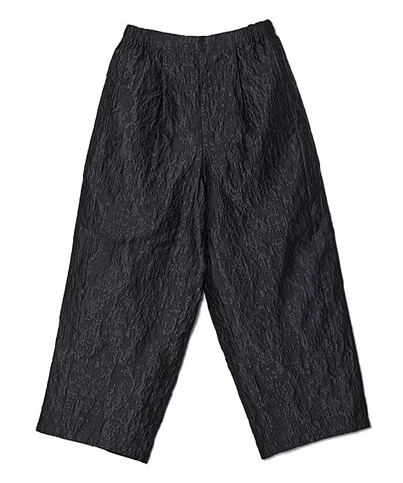 品のある光沢感と凹凸感を出すエンボス加工を施したジャガードパンツ。