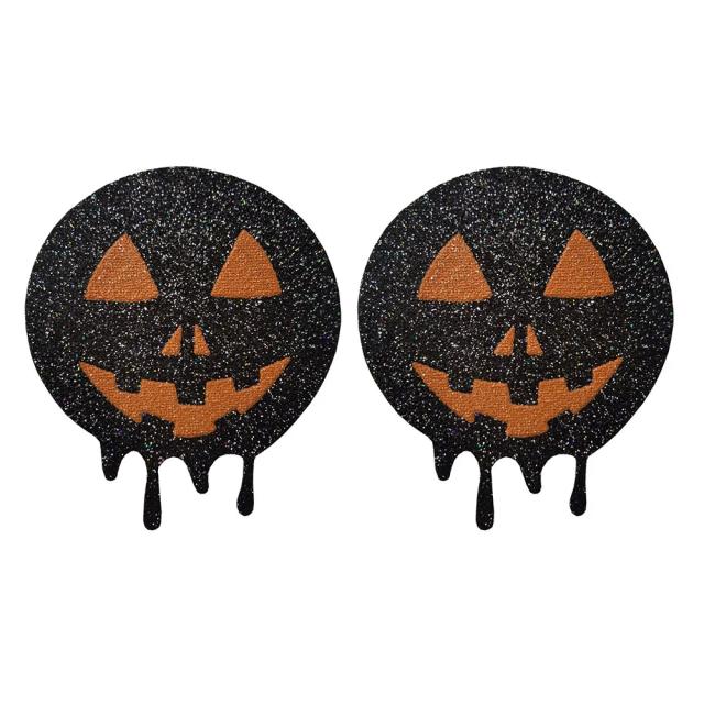 ジャックランタンニップルステッカー 1ペア 南瓜のお化け カボチャ オバケ スカル パンプキン ラメ グリッター 乳首 シール 貼る 下着 ブラジャー ランジェリー アクセサリー メンズ レディース ベリーダンサー 社交ダンス 女子 男子 バストトップ セクシー ニップレス
