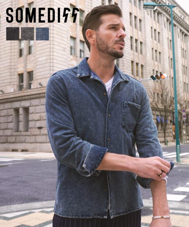 シャツ メンズ ブランド 長袖 デニムシャツ メンズ ウエスタン ストレッチ シャツ メンズ カットデニム トップス メンズ シャツ ウエスタンシャツ メンズ 長袖 ブルー ブラック 春 春服 春物 おしゃれ ちょいワル somediff サムディフ 夏新作 新作