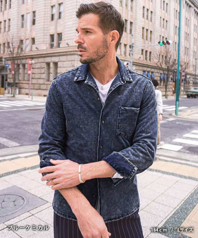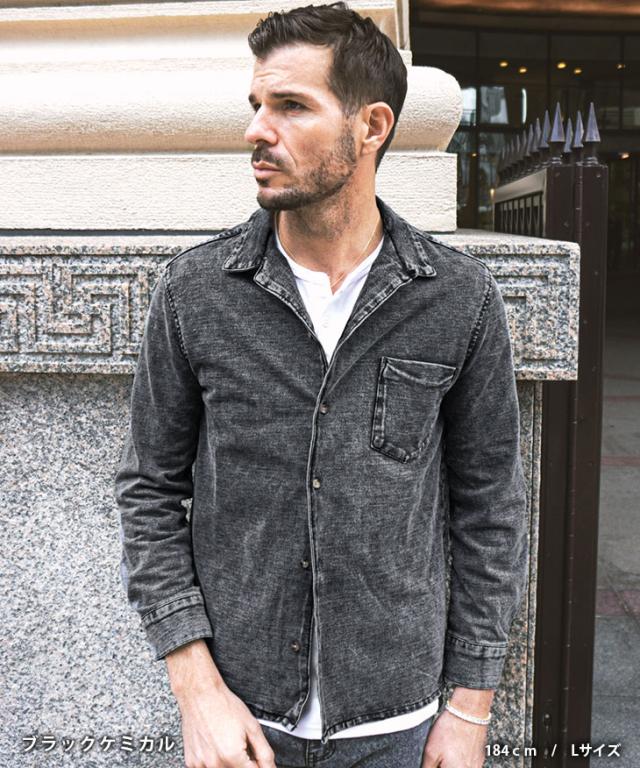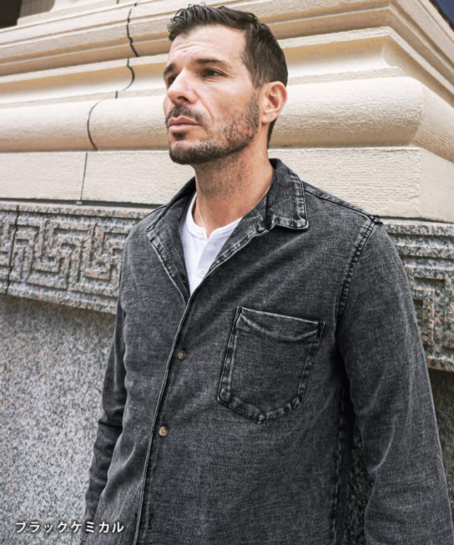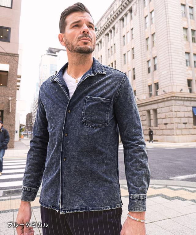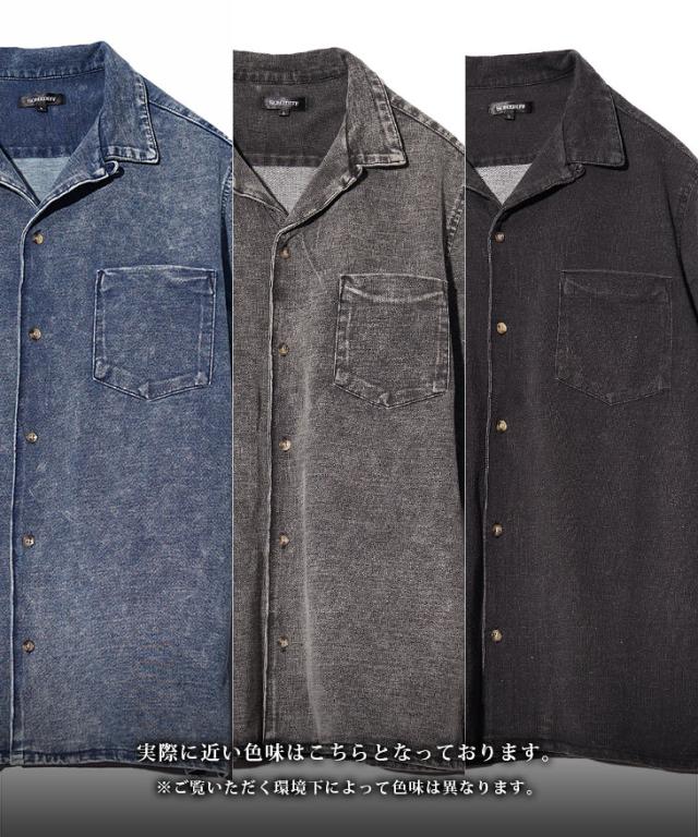 【カットデニムオープンカラーシャツ】
