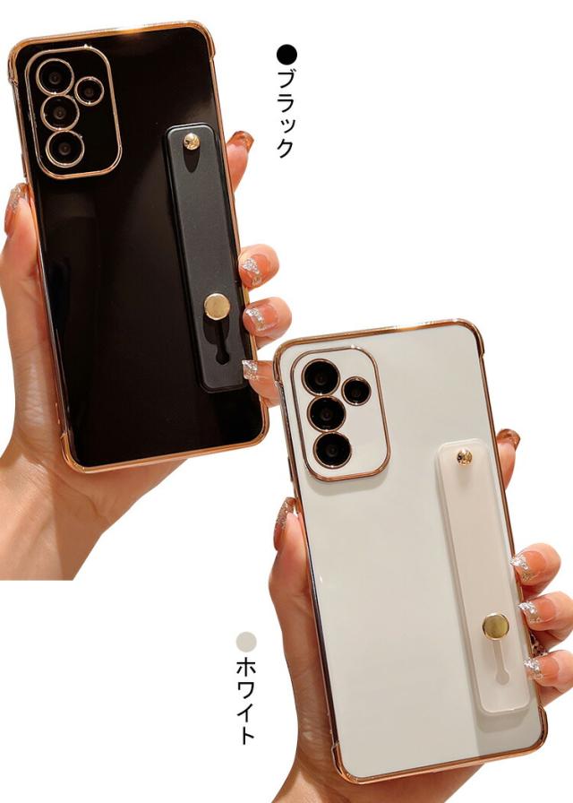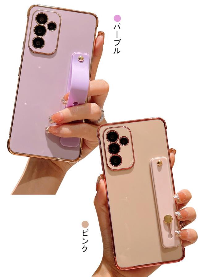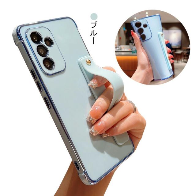 Galaxy A55 5G ケース 耐衝撃 メッキ シリコン ソフト ケース スタンド機能 持ち手 ベルト スマホバンド 落下防止ベルト スマホベルト 片手操作 取っ手 ストラップ穴 Samsung サムスン ギャラクシー A55 5G スマフォ/スマホケース/カバー