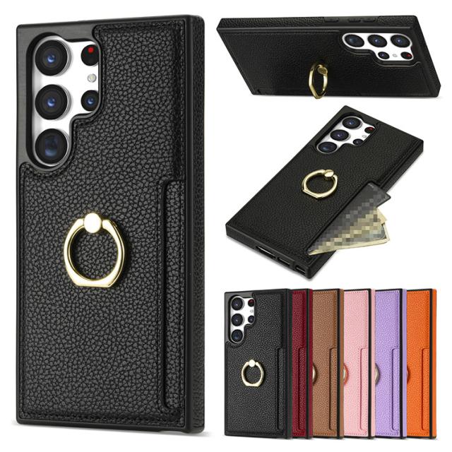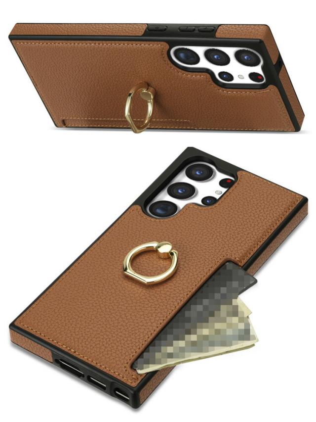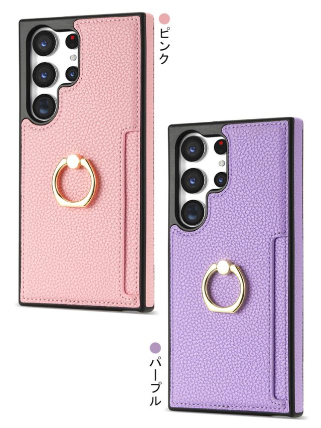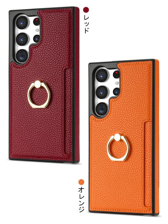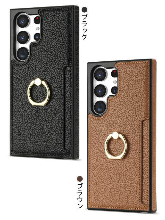 Galaxy S24 ケース S24+/S24 Ultra カバー 耐衝撃 PUレザー カード収納 一体型リング付き スタンド機能 背面レザーケース アンドロイド ケース Samsung サムスン ギャラクシー S24/S24 プラス/S24 ウルトラ スマートフォン/スマフォ/スマホケース/カバー