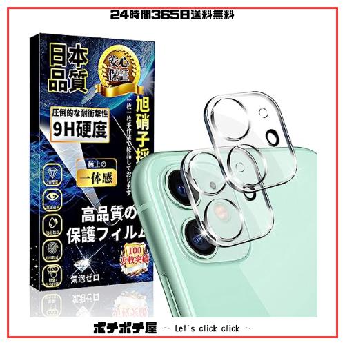【対応機種】iPhone 11。【簡単な取り付け方法と気泡なし】 1.アルコールパッドを使ってレンズの汚れを拭き取リます。 2.マイクロファイバークロスを使って、アルコールを拭き取ります様々な角度から光をあて、拭き残しがないかチェックします。 3.ホコリ取りシートを使って、レンズに残ったホコリや布繊維を取り除きます。 4.粘着面フィルムを剥がし、レンズフィルムをゆっくりと乗せます。 5.レンズフィルムを軽く押すと自動的に液晶画面に吸着します。 6.仕上げにレンズフィルムの汚れを拭き取ってください。万一が気泡が入った場合は、クロスを使って気泡を中央から外側に押し出して下さい。 【商品特徴】 「業界最高硬度9H 」 日本製旭硝子ガラス素材採用。業界最高レベルの9H硬度、ハードコーティング技術により、衝撃を緩和し画面の破損を最低限まで抑え、すり傷や指紋から携帯電話のレンズをしっかりと保護します。 「飛散防止」 防爆裂、飛散防止加工で、万が一フィルムが破損しまった場合でも、ガラスが飛び散らず張り付いた状態になります。 「指紋防止」 カメラフィルムは疎油性コーティングがされているため、油脂類のバリヤ(はいあがり防止)拡散防止/付着防止/防汚など、さまざまなメリットを発揮します。 「極上のタッチ感」 3D Touch対応可能、携帯電話本来のタッチ感で、快適な操作感を実現します。 「高透過率」 厚さ0.2mm極薄ガラスを採用、高い透過率で、元々の画質が損なわれなくて鮮やかな画面を維持します。ゲームをお楽しみいただけます。 「気泡防止」 気泡が入りにくく、誰でも簡単貼りつけ、角を合わせてポンと中心を押すだけで貼りつけ完了、自動吸着機能!これは難しいと心配しないでください。気泡を発生させず、美しい貼り心地を提供致します。 「ラウンドエッジ加工」 0.2mmの強化カメラフィルムは携帯電話の画面より小さくて、強化ガラスフィルムの縁のラウンドエッジ加工により、引っ掛かり感がなくサイドからの衝撃を緩 和し、ケースを装着したまま、全然干渉しません。そのほか、適度な隙間で貼り付け簡単、見栄えが最高です。