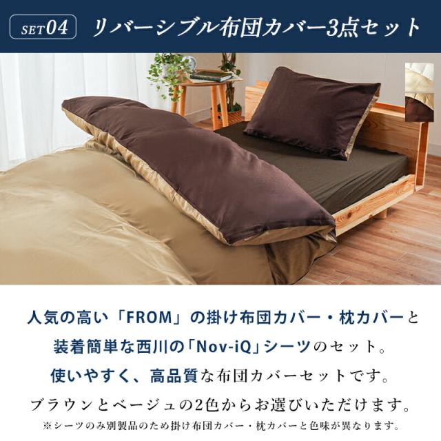 布団セット マットレス付き シングル 西川 6点セット 掛け布団:ポーランド産ダック90% 羽毛布団 敷き布団:健康敷き布団 枕:プラスフィットピロー カバー:リバーシブル布団カバー3点セット FROM Nov-iQ 清潔 セット 新生活セット 来客 引っ越し 新生活 一人暮らし 当社限定