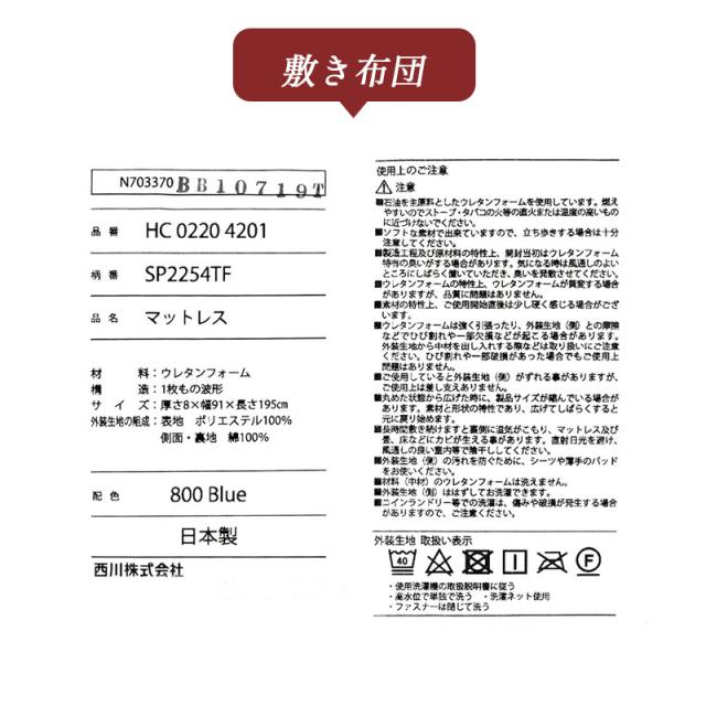 商品名 | 西川 健康敷き布団 |