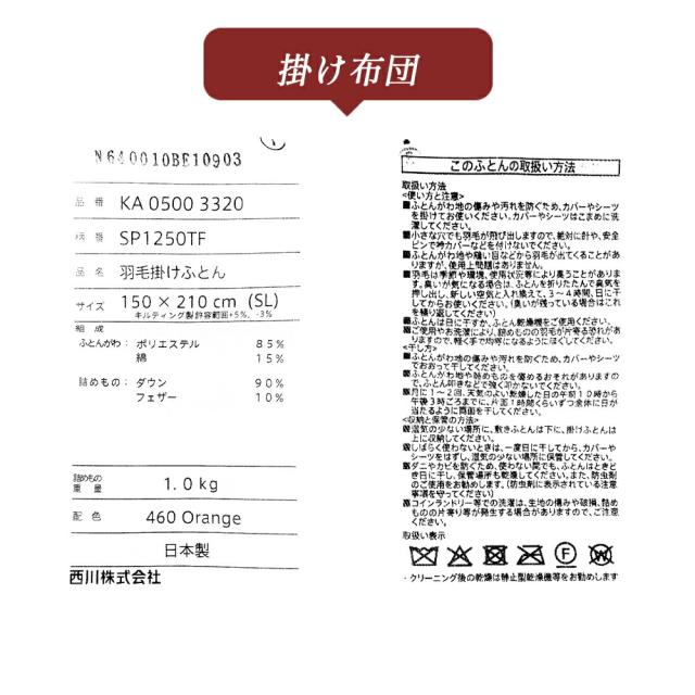 商品名 | 西川 羽毛掛け布団 |