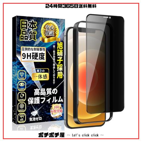 iPhone12 ガラスフィルム 覗き見防止 iPhone 12 Pro ガラスフィルム のぞき見防止 フィルム【ガイド枠付き】 硬度9H 貼り付け簡単 自動吸