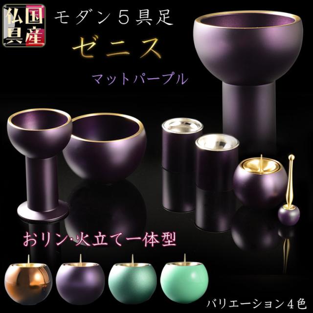 国産仏具【高岡製 高級5具足セット:ゼニス 淵金 マットパープル3.0寸】お仏具 仏壇仏具 送料無料