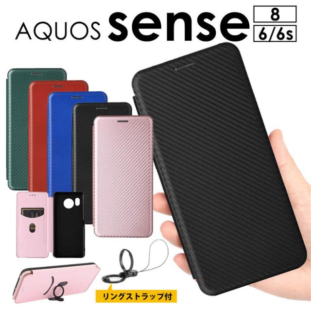【リングストラップ付】AQUOS sense10/sense9/sense6 ケース カバー 手帳型 炭素繊維調 おしゃれ スマホ ストラップ リング 落下防止AQUOS sense8 SH-54D ケース アクオスセンス8 手帳ケース カード収納 AQUOS sense7 ケース 手帳型