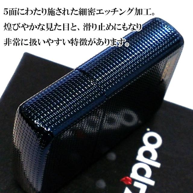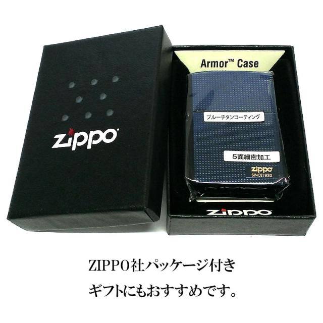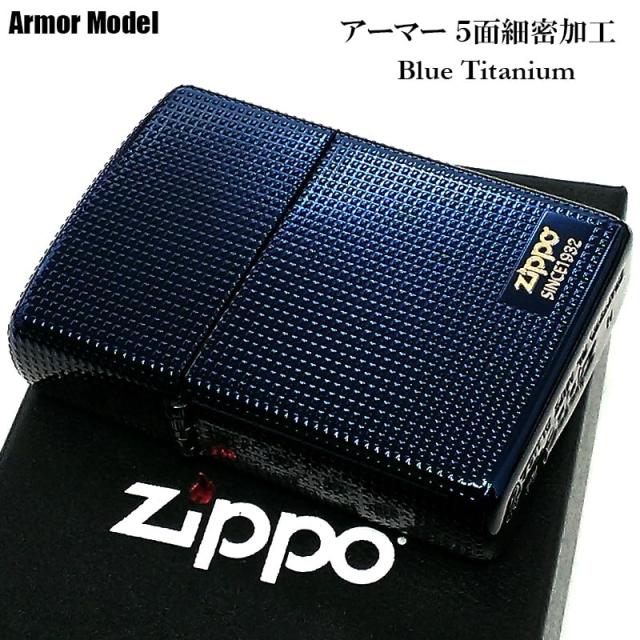 ZIPPO かっこいい ジッポ ライター アーマー 5面細密加工 ブルー チタン加工 青 ロゴ おしゃれ 重厚 メンズ レディース 動画有り