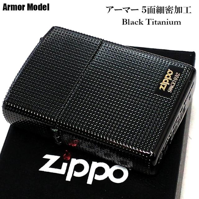 ZIPPO アーマー ジッポ ライター かっこいい 5面細密加工 ブラック チタンコーティング 黒 ロゴ おしゃれ 重厚 メンズ