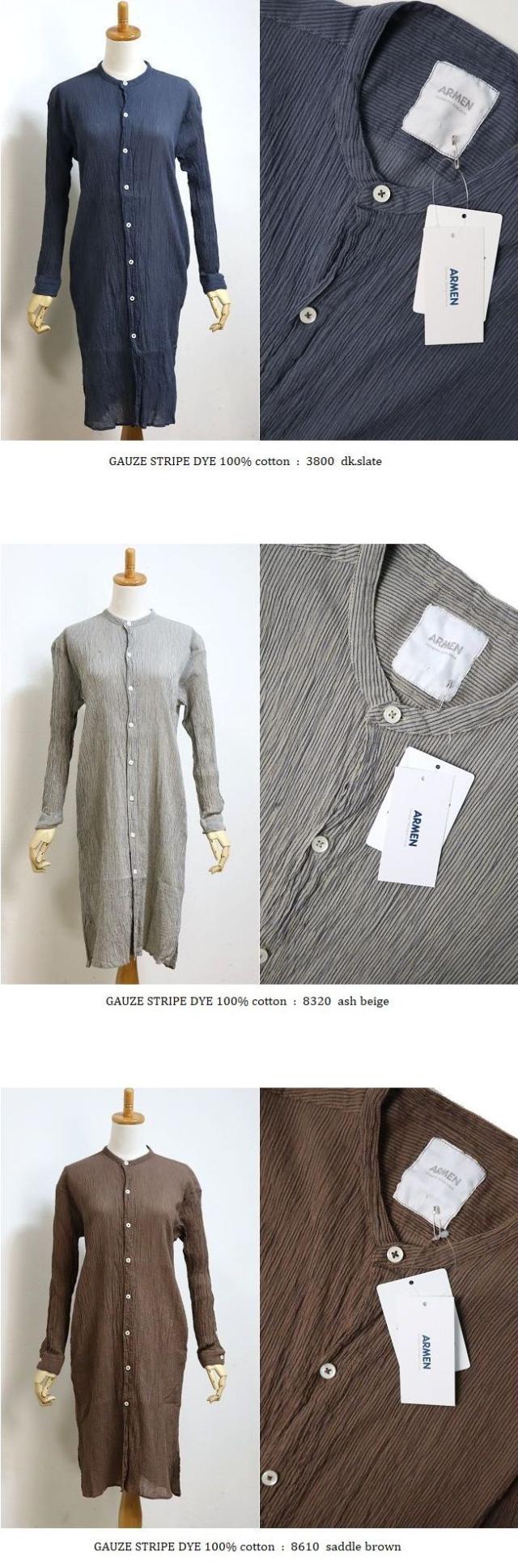 SALE 50%OFF Armen アーメン UTILTY BANDED COLLAR LONG SHARTS GAUZE STRIPE DYE レディース