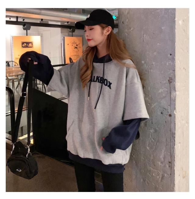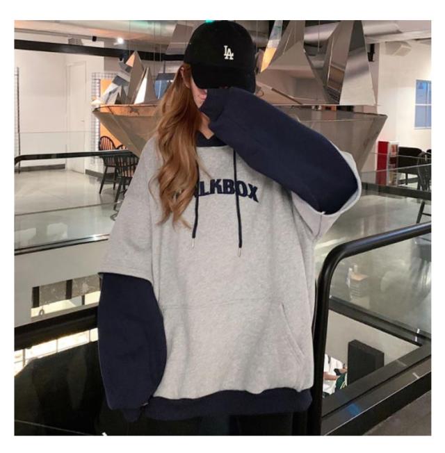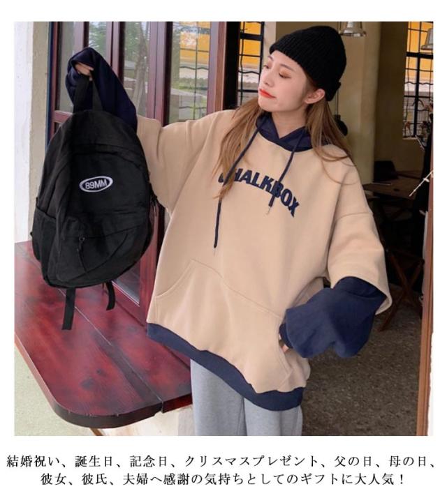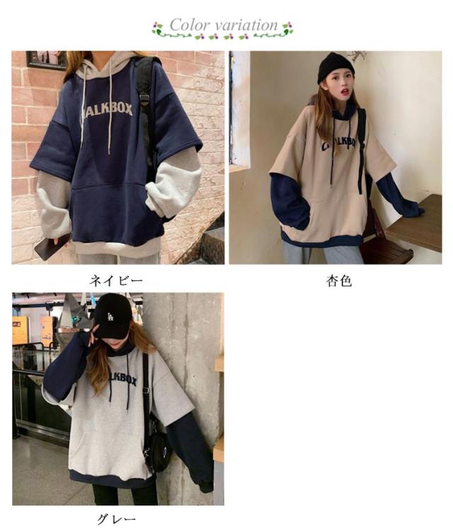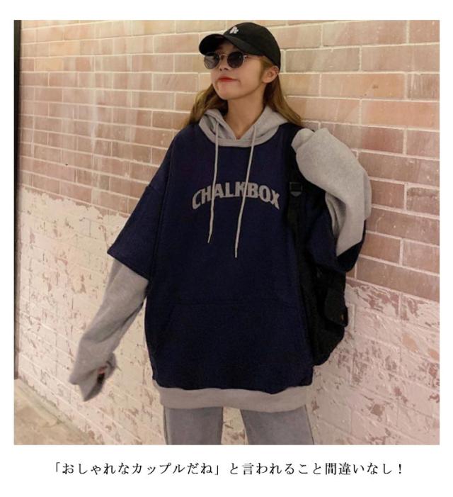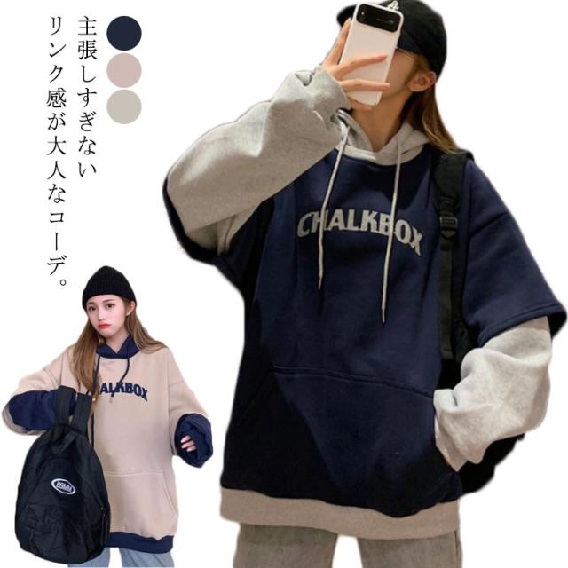 配色 レディース ペアルック 韓国風 パーカー カップル フード付き 男女兼用 パーカー メンズ 送料無料 長袖 お揃い 送料無料 スウェット お洒落 秋冬 重ね着風 プリント トレーナー プルオーバーパーカー 着?せ ゆったり ポケット付き