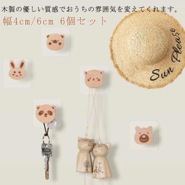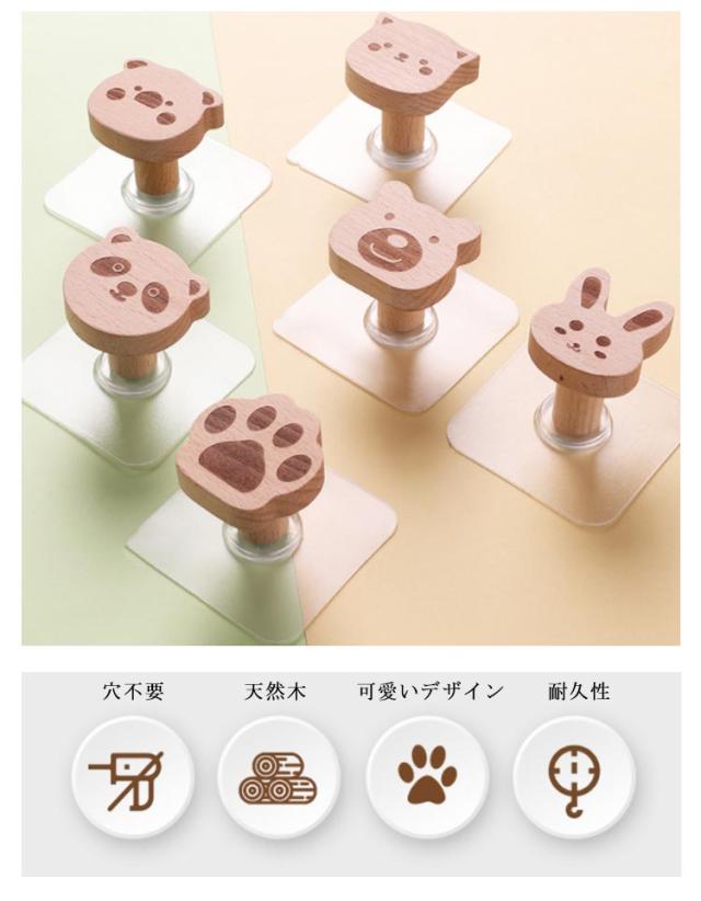 6個セット 木製フック フック 北欧風 壁掛け 動物 子供部屋 兎 おしゃれ 熊 パンダ ブタ 猫 フック 強力 壁掛け 北欧風 粘着 木製 ネジ 壁フック 粘着フック 木 賃貸 インテリア 北欧 かわいい 木製 強力粘着 壁 洋服 帽子 鞄 穴開けない 雑貨