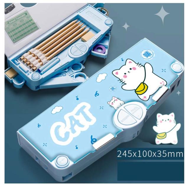 | 機能性はバッチリなので大活躍間違いなし。ペンケース。 時間割表+消しゴムケース+ハサミ付き+鉛筆削り+鉛筆ホルダー(鉛筆5本を収納)+テープ収納! 大容量でテーブルの上で散らばりそうな小物も、一気におしゃれに片付きます。 文房具が一目瞭然で、分かりやすく使いやすい! | |