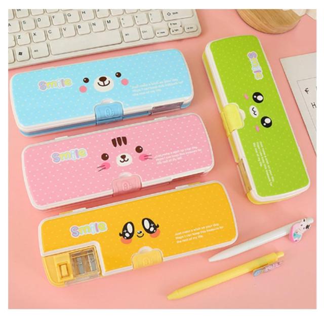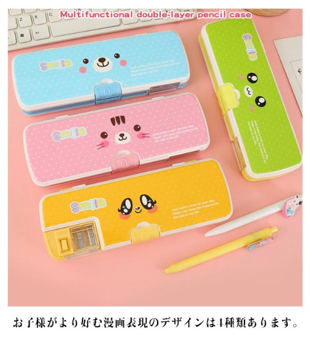 鉛筆削り 女の子 筆箱 かわいい 両面スリム 小学生女の子かわいい筆入 筆箱 かわいい 多機能 便利 鉛筆削り付き アルロック 筆箱 カートゥーン表情