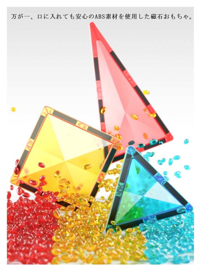 | 100PCS 男の子、女の子、子どもから大人までこの磁気おもちゃを楽しめます。楽しみながら学ぶドリルで3歳、4歳、5歳、小学生と長い期間お役立て頂けます しっかりとした磁力を持ちながら、お子様が指を挟んでも痛くならない安全仕様。万が一、口に入れても安心のABS素材を使用した磁石おもちゃ。 プラスティックが透明で内部構造が理解しやすくなっています。 正三角形・二等辺三角形・正方形・長方形の多彩な6色のパーツに、ボールとスロープが追加!自分だけのビーズコースターを作ろう! 保育園、幼稚園、幼児教室、キッズ スペースへの納入も多数あり、お誕生日、入園祝い、入学祝い、クリスマスなどの プレゼント、ギフト、贈り物に選ばれています! | |