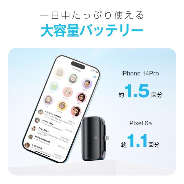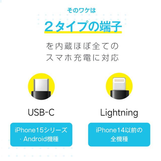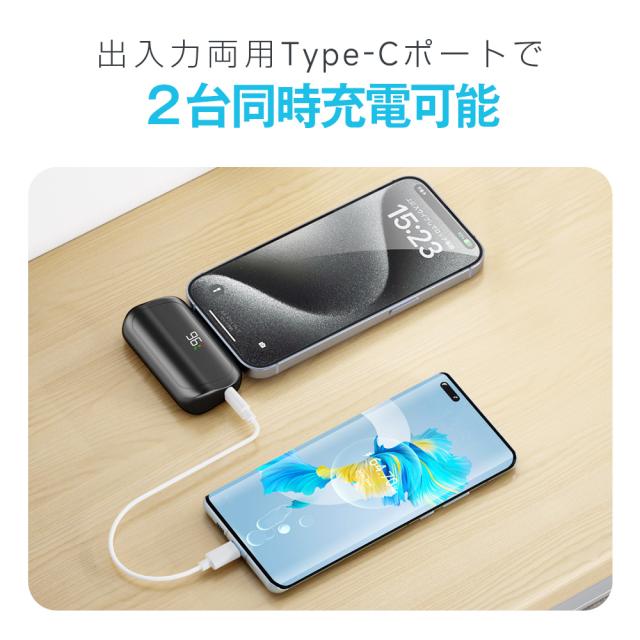 最新版 モバイルバッテリー A88 軽量 大容量 小型 Lightning type-c 一体型 2.4A急速充電 6800mAh 2台同時充電 スマホ充電器 iPhone/Android