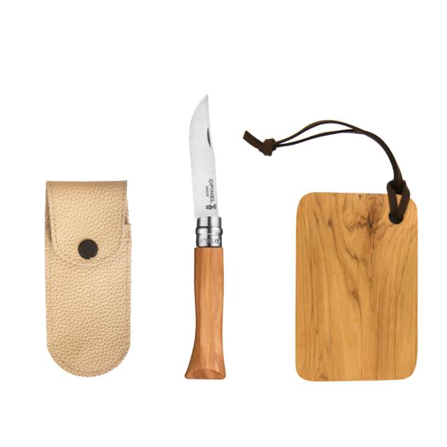 OPINEL(オピネル) ステンレススチール ナイフ レザーケース ベージュ&カッティングボードセット #6 オリーブ オピネルナイフ 6 キャンプ ナイフ アウトドア 折りたたみナイフ