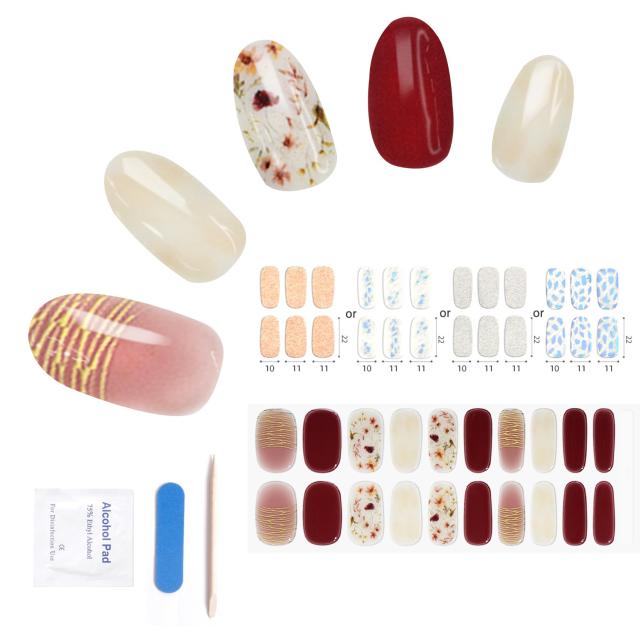 ?【1シート24枚】 貼って固めるジェルネイルシール。1シート24枚のネイルシールの中からご自分の爪のサイズに合ったものを貼り、UVライト(別売り)で硬化するだけでサロン級の仕上がり。剥がれにくくサロンの様な立体感やツヤのあるネイルに簡単に仕上がり、ネイルポリッシュやジェルネイルに比べて時間をかけずに美しいネイルを楽しめます。