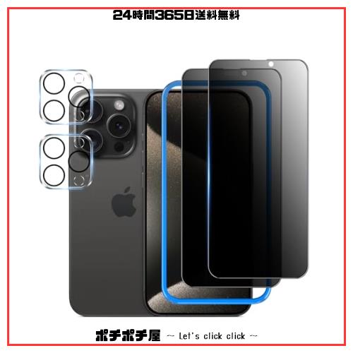 【覗き見防止】 iPhone15 Pro ガラスフィルム 覗き見防止 【2枚】+ iPhone15 Pro カメラフィルム 【2枚】【ガイド枠付き】 液晶保護 フ
