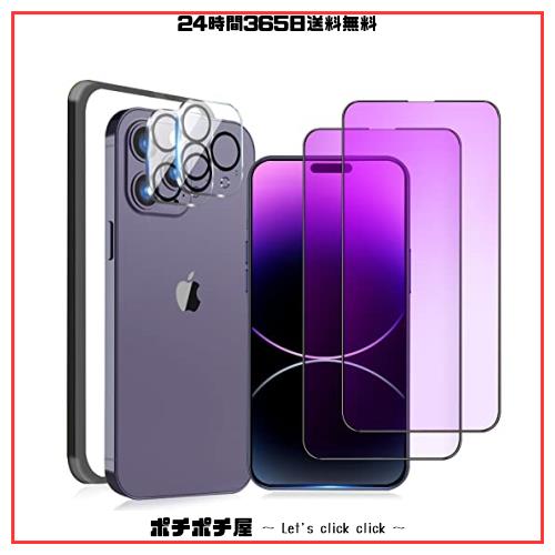 iphone14Pro Max ガラスフィルム ブルーライト[2枚] iPhone14Pro Max カメラフィルム[2枚]アイフォン14ProMax 強化ガラス 全面保護 i
