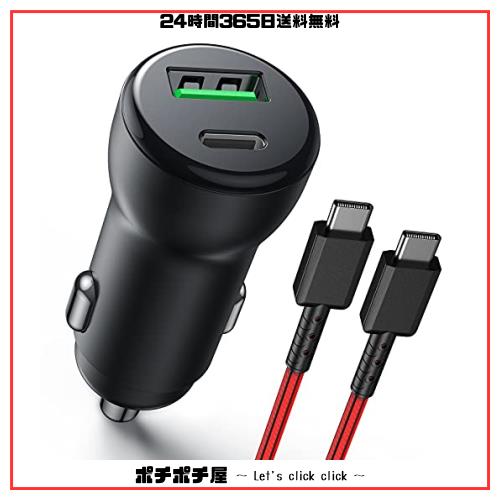 車載充電器 シガーソケット USB USB-C カーチャージャー 急速充電 【PSE認証済・PD30Wポート+QC3.0ポート・usb c急速充電ケーブル付き】i