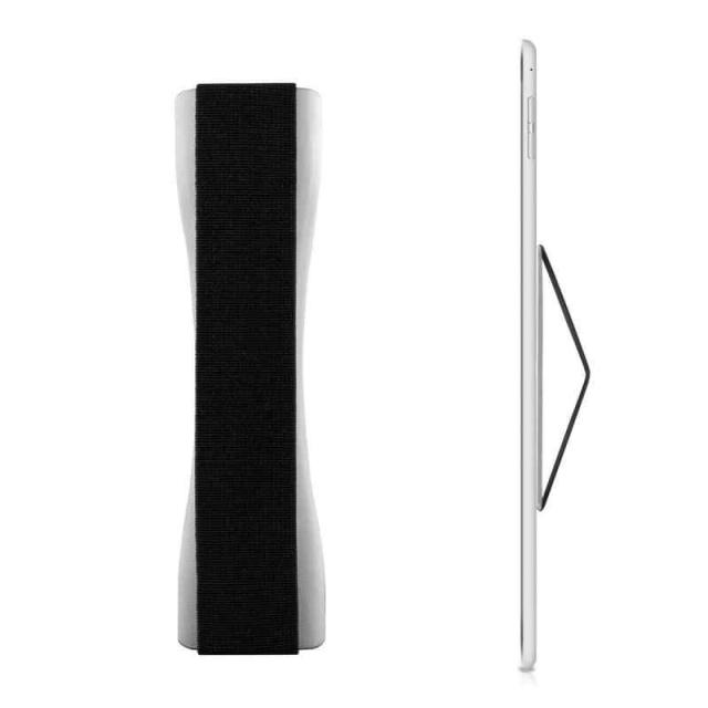 kwmobile フィンガーホルダー iPad Samsung Huaweiなどに対応 - 落下防止 片手 ゴムバンド Tablet PC - バンド グリップ 黒色 (シルバー / 黒色)